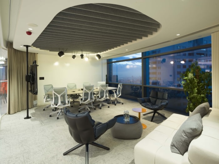 通过在立面和工作区之间创建一个二级流通区,创造了一个提供不同功能的空间。由于这些区域靠近工作空间,因此与在普通会议室中相比,在这里作为团队工作要愉快得多。这样,减少了预订房间和集合所需的时间等消耗时间和注意力的因素。#办公室装修设计公司#