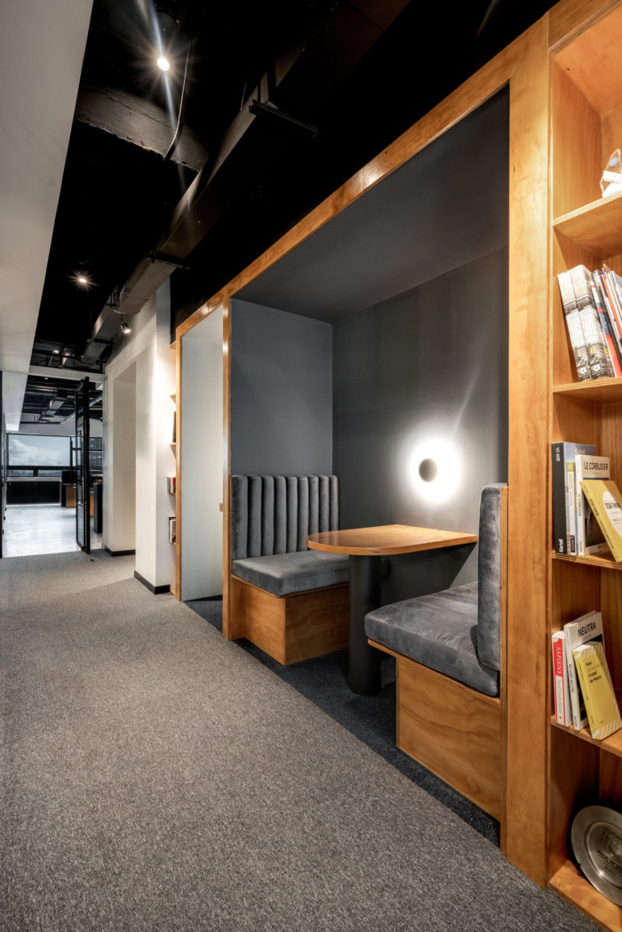 考虑到未经处理的空间的特殊性和粗糙性,建筑师最大限度地利用了每一个壁龛,包括储藏室、咖啡站、非正式会议角落、电话亭甚至是猴子吧。大多数家具都是从以前的所有者那里重新使用的,并进行了调整以适应新的需求和设计。旧的地毯地板被拆除,原来的混凝土地板暴露在外。最终结果是旧外壳与现代功能的和谐融合。办公空间传达出一种平衡的优雅舒适感,以及公司家庭式的友善。#办公室设计装修公司#
