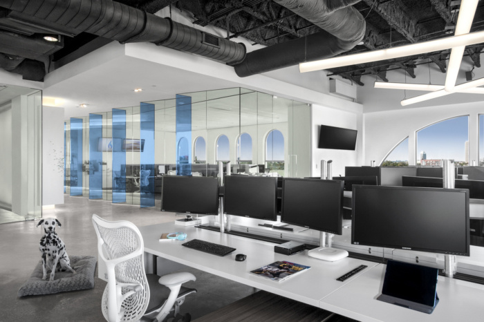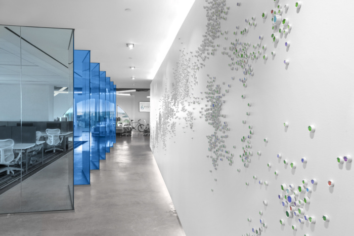 总体而言,该空间的新设计对员工的工作效率以及整体健康状况产生了巨大影响。通过坐/站桌和显示器臂改进了人体工程学,新设计的冰沙棒提供更好的营养。该设计还包括办公室内的浴室和淋浴间,以促进健康的习惯,例如骑自行车上班和午餐时间锻炼。设计团队还促进了一个带有抛光混凝土地板的宠物友好工作场所。#办公室空间设计装修#