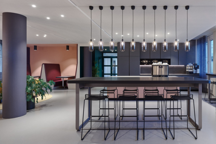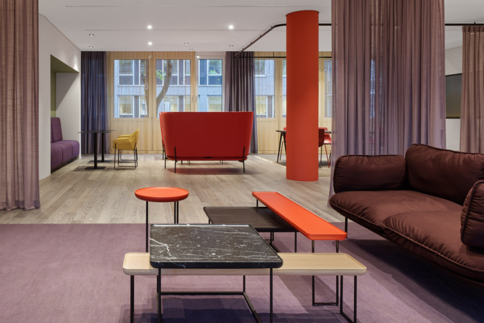 办公室的开放性立即引起人们的注意:大玻璃正面将新的入口区域变成了公司的名片。它毫不犹豫地宣告了一个闷热时代的结束:通风的薄板告别了这种重量级别的办公室所熟悉的厚重的木镶板。由来已久的习惯让给了明亮多彩的色调。#办公室装修设计#