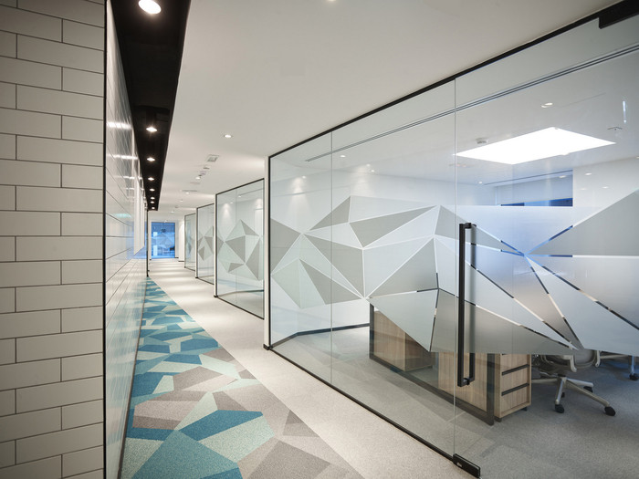 设计遵循受品牌标识启发的概念。标志是三角形形状的有趣组合,似乎像折纸一样打开。#办公室设计办公室装修#