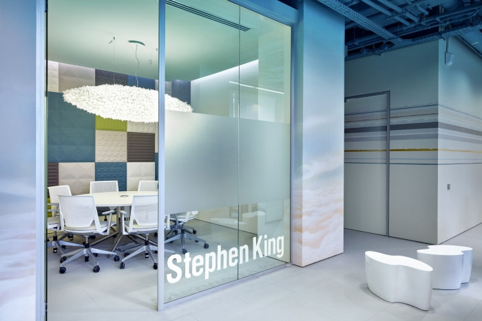 建筑师面临的任务是以牺牲表达方式和体积为代价来传达员工的态度。金条盘旋在冉冉升起的太阳云中——成为整个办公室设计的中心元素。中心元素是接待台,采用999个样品的金锭形式。带有柔和哑光灯的程式化灯就像小云一样——同样的主题可以在墙上的图画中找到。#办公室装修公司哪家强#