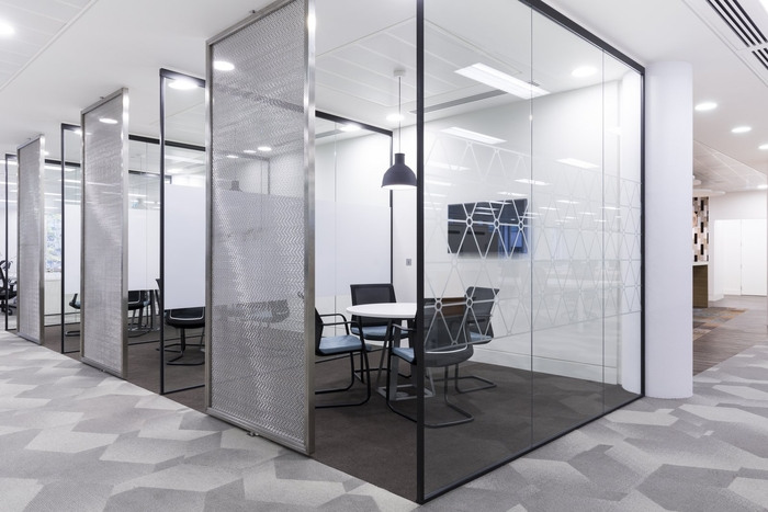在核心工作区的后端,有三个项目室,带有巧妙的旋转金属网屏,提供半私人空间。所有这些房间都配备了 AV,使其成为小型团队潜入安静时间或小型会议的有用空间。#办公楼装修设计公司#