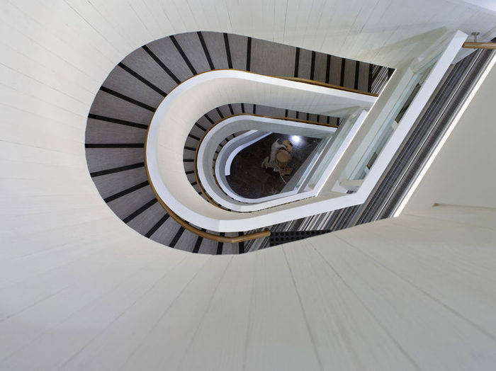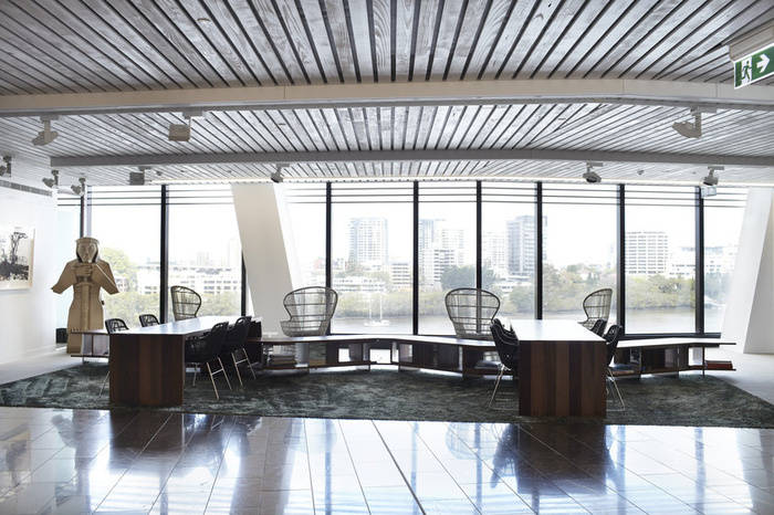 新装修利用了11层提供的布里斯班河和故事桥地标的低层直接景观。周边柱子的雕塑性质进一步说明了通过基础建筑的连接关系,这些柱子不对称地沿着建筑立面向上扭曲。装修通过人体尺度和天然石材的高质感材料、再生木材和应用于内部螺旋楼梯和装修细节的编织细节进一步反映了这种地平面和向上的连通性。#公司办公楼装修方案#