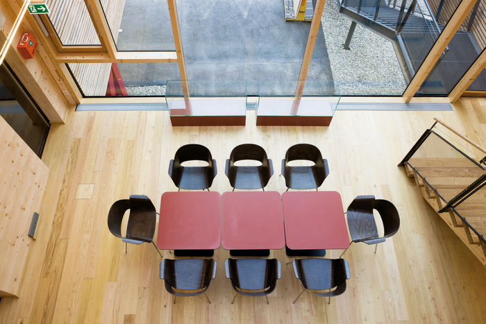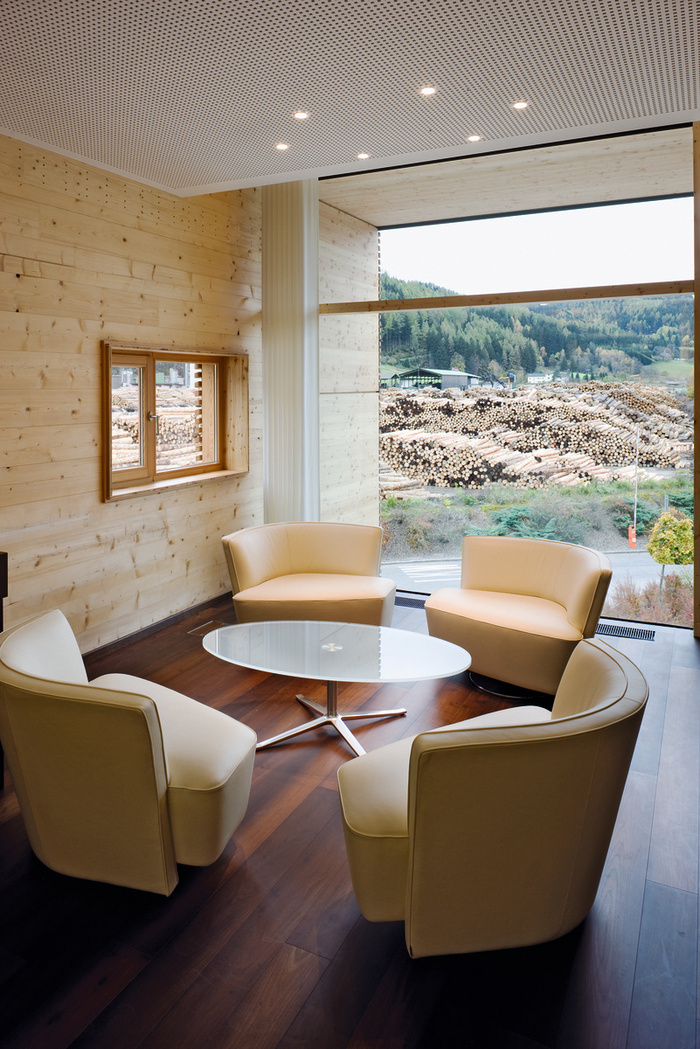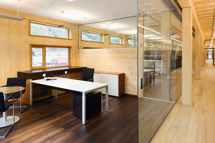 以木材为灵感的办公室 透明的玻璃立方体打破了坚固性