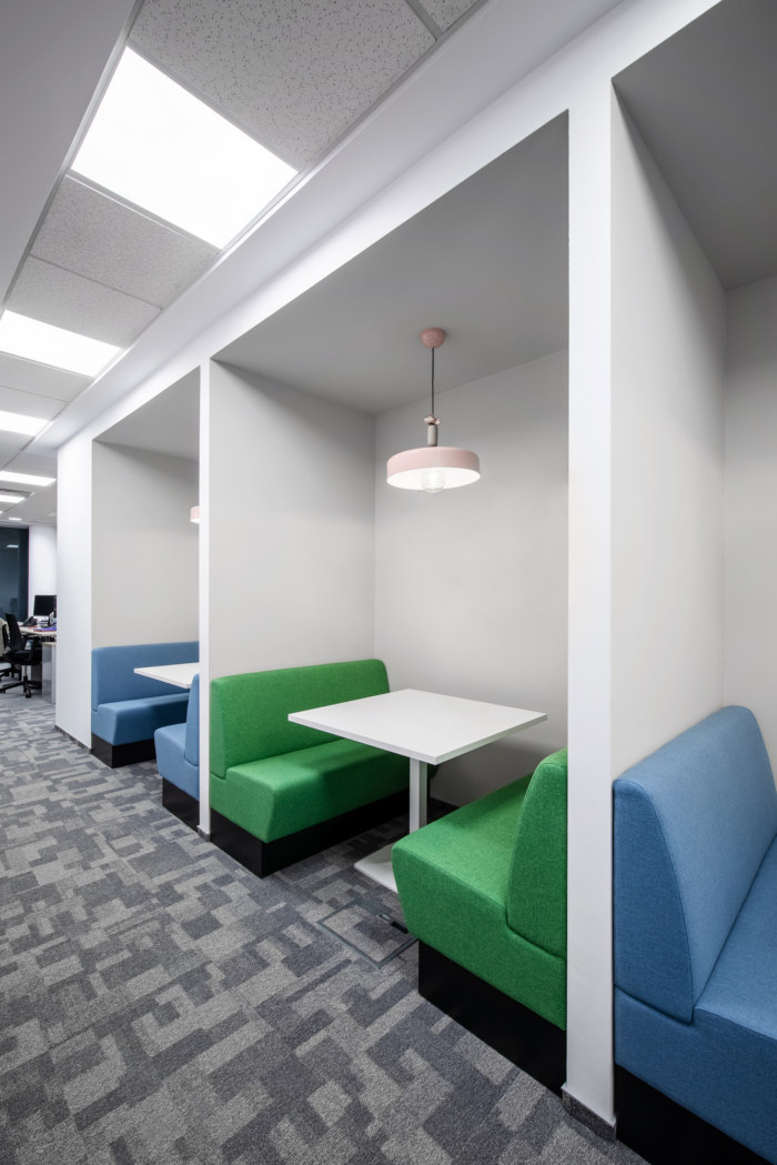 设计的一个关键方面是声学校正,尤其是在开放空间区域。在非正式区域和圆形剧场的开放式天花板上安装了悬浮吸音板,确保工作区域的活动不会受到非正式活动的干扰。声学会议室和电话亭已放置在开放空间中,以满足私人谈话的需要,如采访、电话会议和其他短期员工会议。新办公空间体现了公司的使命和价值观,如团队合作、协作、质量和沟通。#广州写字楼装修公司#