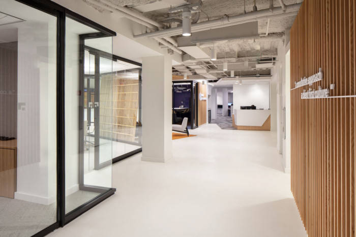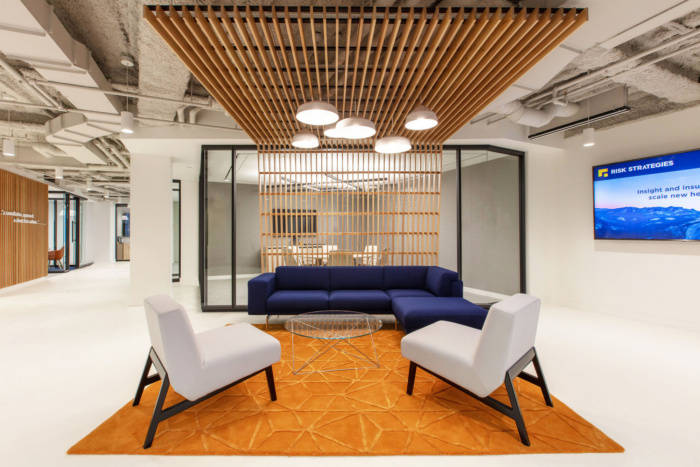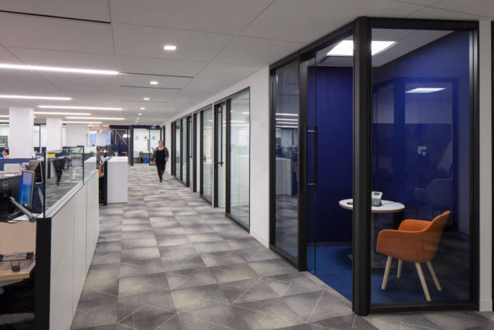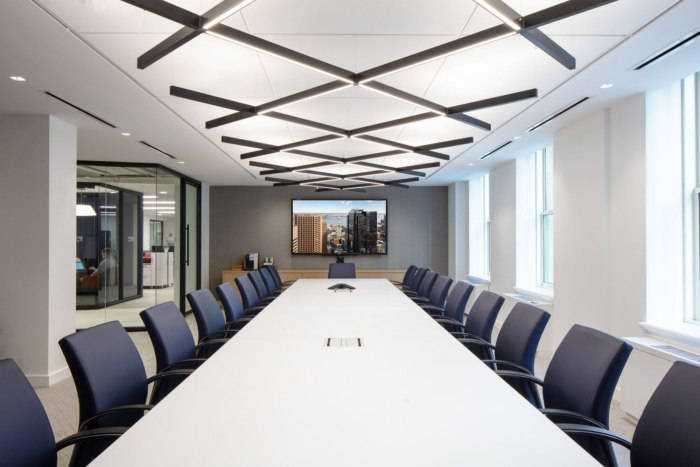 从行政区微妙的同色调线性图案地毯到后续区域的明确几何图案,为每个空间提供了独特的用户体验。当从一个区域走到另一个区域时,这种视觉转变创造了一种新鲜而动态的构图。#公司写字楼装饰装修#