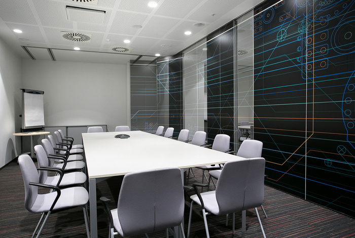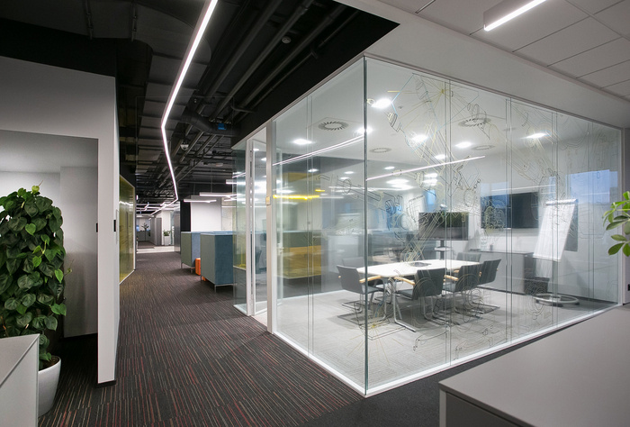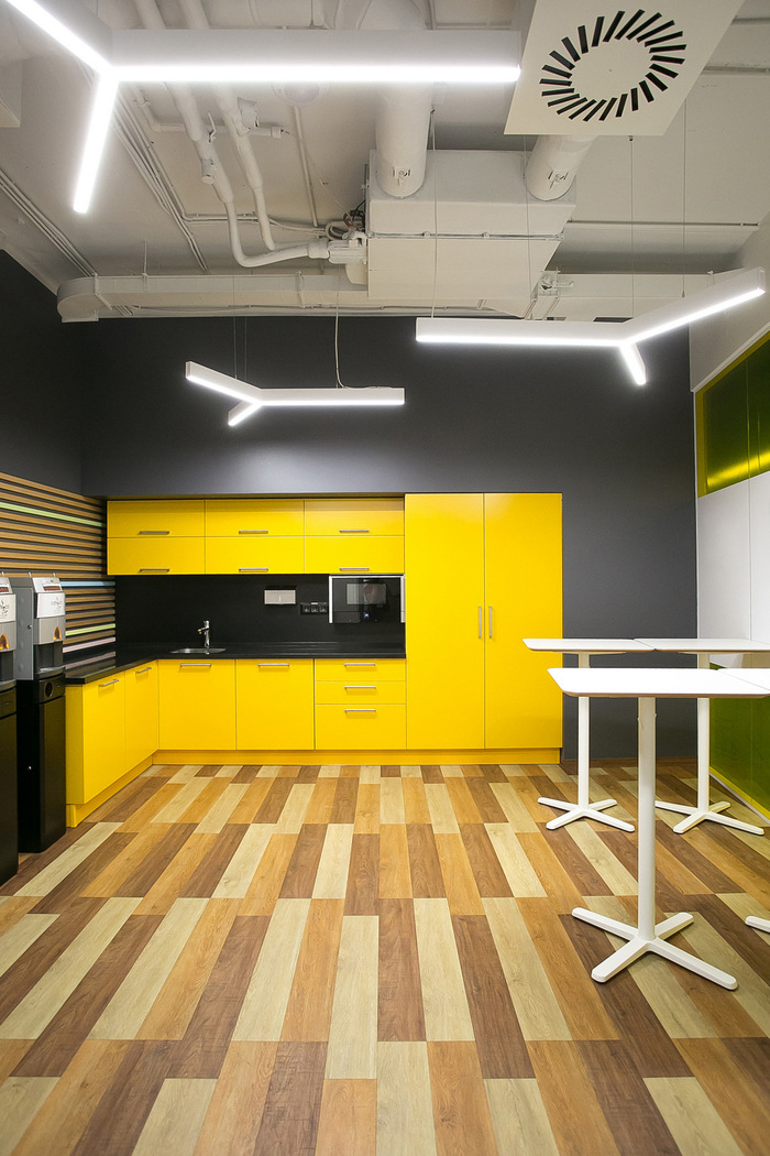 建筑师为团队或单独工作以及新办公室的非正式交流创造了各种各样的场所。它们可以通过明亮的设计、瓷砖的动态图案和涂有石墨的开放式天花板通信轻松识别。这里有所谓的协作区、团队室——讨论的小房间、传统的会议室、可以与同事面对面聊天的高背沙发,甚至是私人电话的电话亭。每层楼设备齐全的厨房和淋浴间完善了现代人体工学办公室的形象。#办公室设计装修案例#
