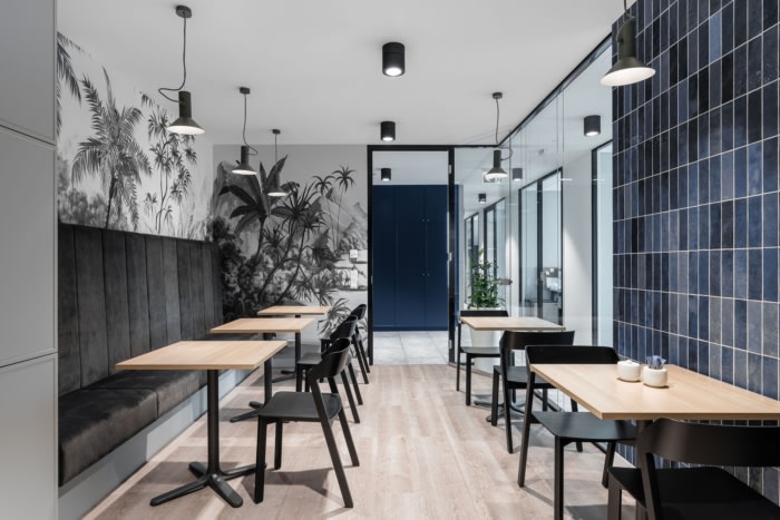 墙壁的饰面设计采用了有趣的材料组合,其中一些材料以前从未被用于室内设计。烧结、丝绒、混凝土、叶片或成型。很多结构和纹理。但是由于适当的调色板,这些材料可以与另一种和谐共存。#写字楼办公室装修案例#