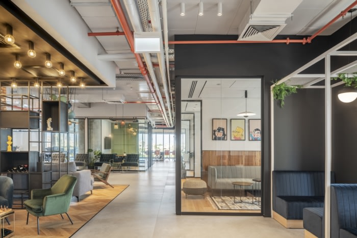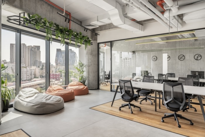 开放空间工作区由地毯和白板定义,以获得更好的声学效果,它们位于一个封闭的区域,周围环绕着不同大小的会议室和小型休息室。#办公空间设计案例#