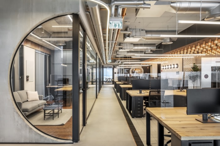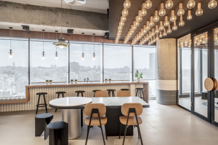 在偏移处干净而简约,带有工业纹理和混凝土和金属铜等材料的音符。然而,除了最小的和工业设计元素之外,还有一些独特的异想天开的特征。一方面,沿着落地窗的秋千为员工和客人提供了一个放松和减压的有趣场所。此外,火箭飞船贴花和标语鼓励旁观者“敢于探索、创新和创造”,在整个办公室营造出一种想象力、创意和创业精神。#公司办公室设计装修案例#