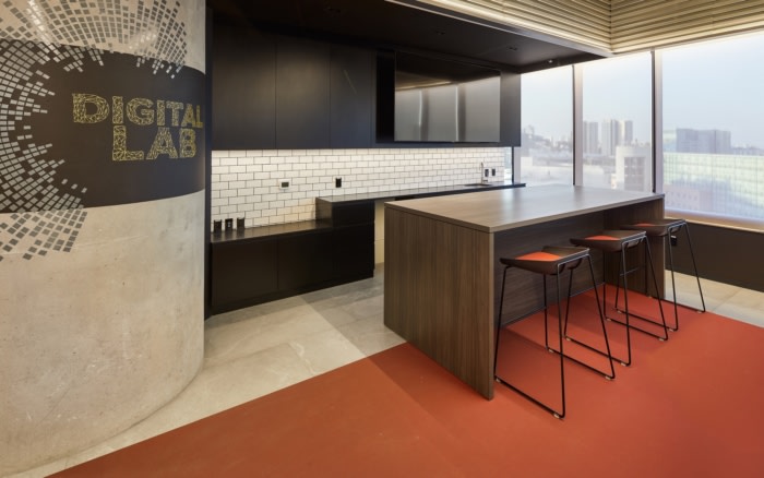 为了进入办公室,一条无限横向深度的隧道为新的塑料语言奠定了基调;光束和双层玻璃相结合,使空间倍增,而天花板上装着裸露的扬声器,彰显了企业的个性。#办公室装修风格#