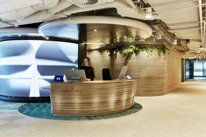 亲生物的设计唤起了与自然的联系,同时平衡了高度集成的技术。与微软平台相连的智能照明、机器人和先进的工作场所占用传感器是微软混合办公体验的关键部分。#办公室装修设计案例#