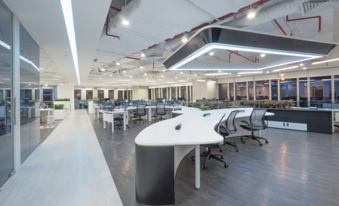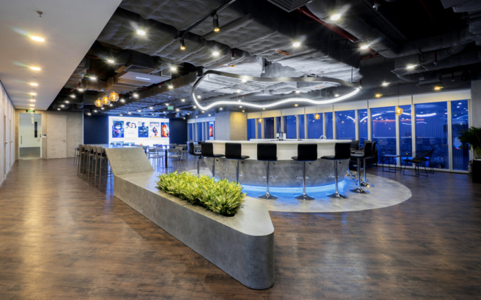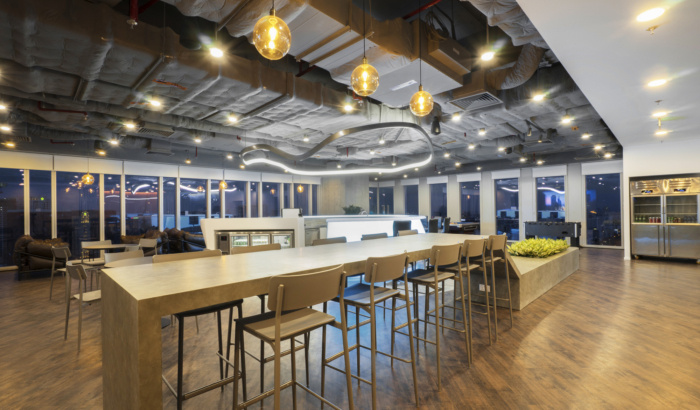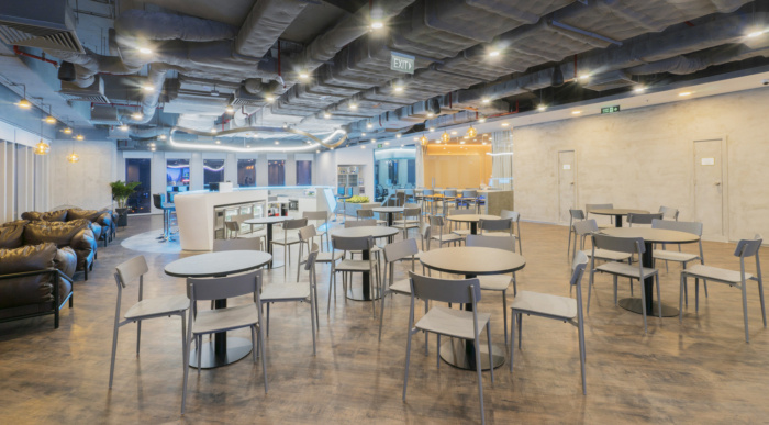 办公室内的功能区域和区域布局合理,以确保最佳的工作体验,从而帮助企业吸引和维护专业人才。办公桌分开放置以强调高度集中。远近互动区域和头脑风暴空间使员工能够更好地互动。此外,还提供酒吧、餐厅和休息室作为员工休闲娱乐的场所。#办公室设计装修案例#