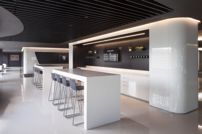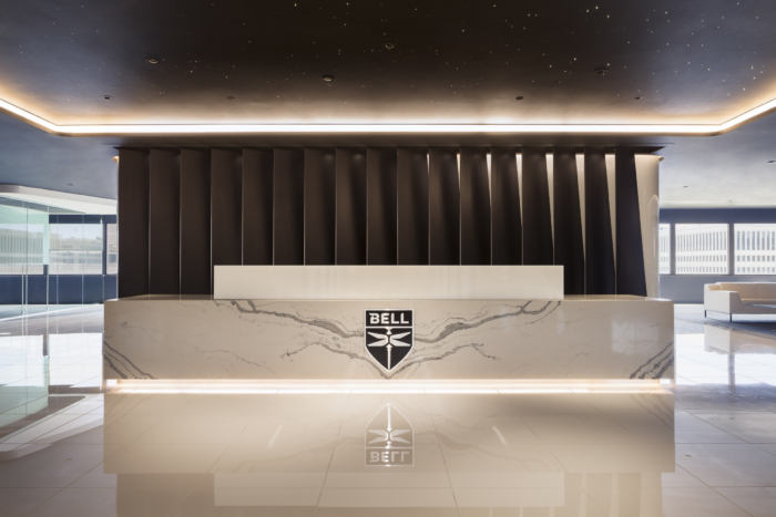 进入后,客人会看到 V280 Valor 的17个转子叶片复制品以及天花板上的“星夜”光场。大约一半的空间专用于演示中心,其中包括大型视觉墙、任务台、飞行模拟器、增强和虚拟现实模拟器、比例模型、会议和活动空间。#公司办公室装修案例#