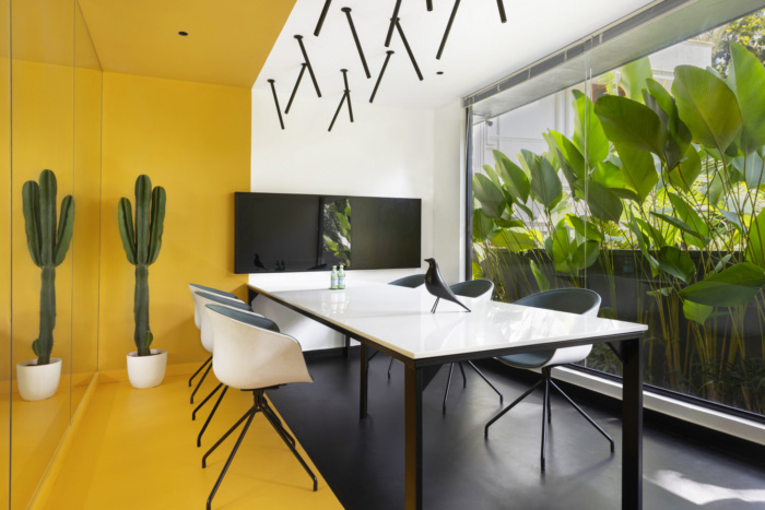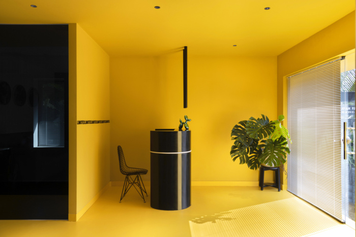 当接触到设计师在设计上的古怪品味时,这个工作空间必须与其他建筑商的办公室区分开来,后者通常在设计时考虑到暴露的材料。#办公室设计效果图#