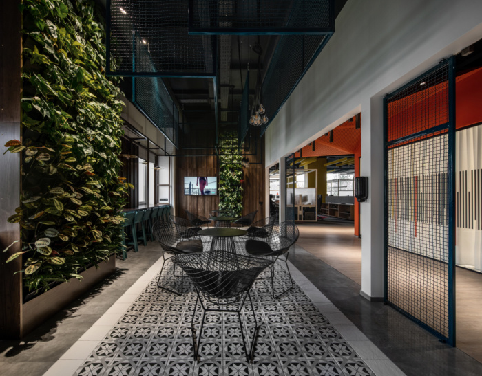 无线控制的磨砂玻璃门提供了隐私。厨房、游戏室、自助餐厅和学习教室都安装在该区域的其余部分。这种规划选择为工人和他们的日常工作提供了最短的沟通联系。#公司办公室装修效果#