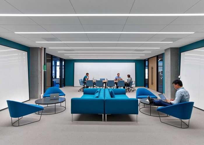 即使您在街上走过,大厅也邀请您进来探索,巨大的镜子打破了内外之间的区别。这样做,它们反映了公司的核心价值观之一:无限深度的存储和可能性。另请参阅悬挂在大堂头顶的大型陆地苔藓球,这表明这是一个不断发展的空间。#办公室装修公司#