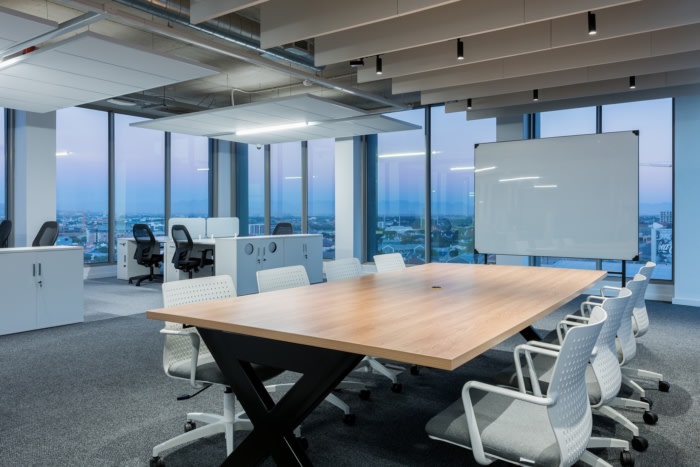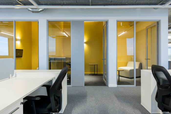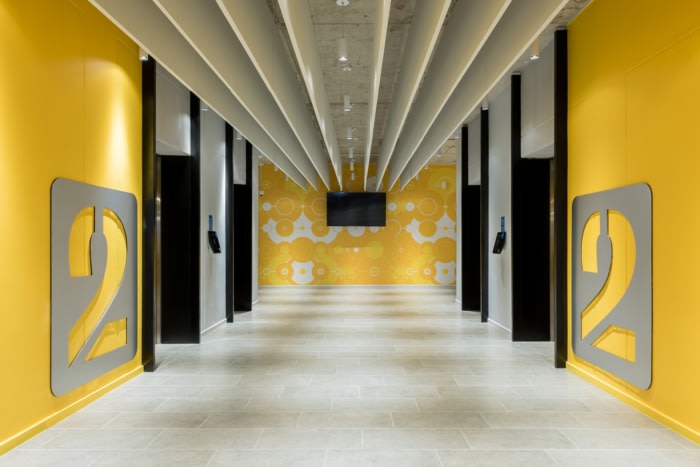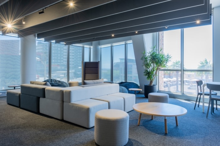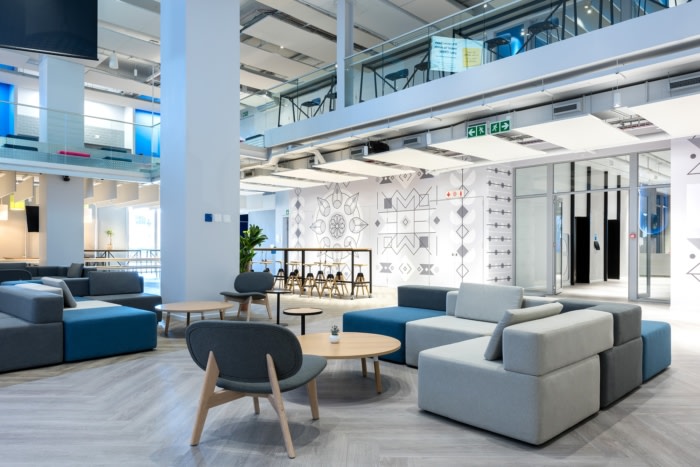 接待处位于一楼,通过一个双容积空间与一楼相连,该空间设有一个以 3D 形式呈现的巨大 2U 标志。整个建筑都有设计干预措施,反映了公司坚持领先的全球工作场所战略,推动所有业务部门之间的沟通和协作。#办公室装修设计公司#