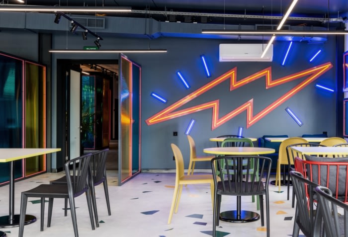 设计师还在食堂保持了积极的环境,旨在促进消化?;钌淖亻凳鞔A⒃诓驶娴牡匕迳?。眼睛熟悉的电绝缘体已经变成了陶瓷灯。有机玻璃制成的灯箱,明亮的家具不会让您的眼睛在吃饭时感到无聊。一旦进入主任办公室,所有的刻板印象都瓦解了,这里没有通常的严谨。一旦你跨过门槛,你就会开始了解它的主人。#广州办公室装修哪家强#