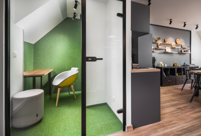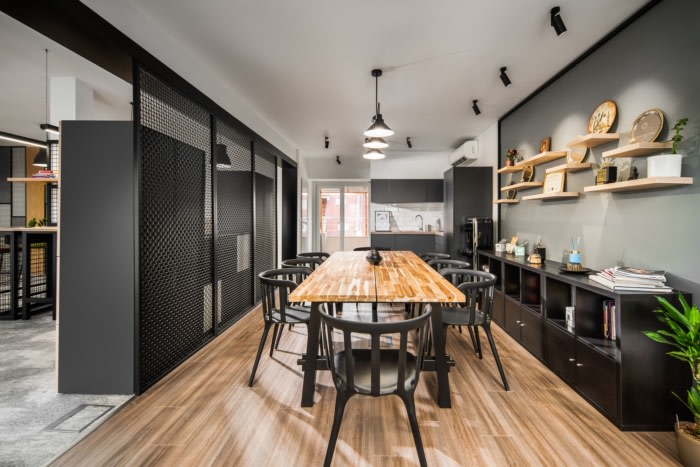 厨房区是聊天和欢笑的地方,让人感觉像家一样。办公室结合了木材和金属的力量。整体氛围适合城市空间,但同时又非常时尚和舒适。#公司办公室装修效果#