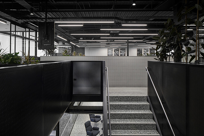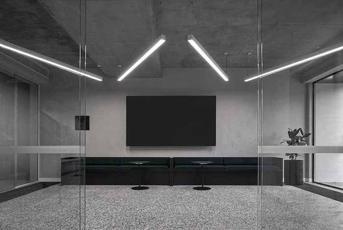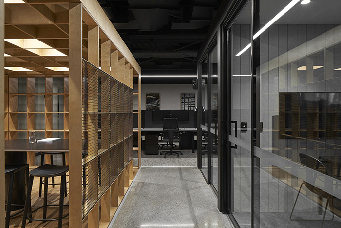 办公室装修设计:微妙的纵向几何形式构图手法丰富了空间细节和精致体验