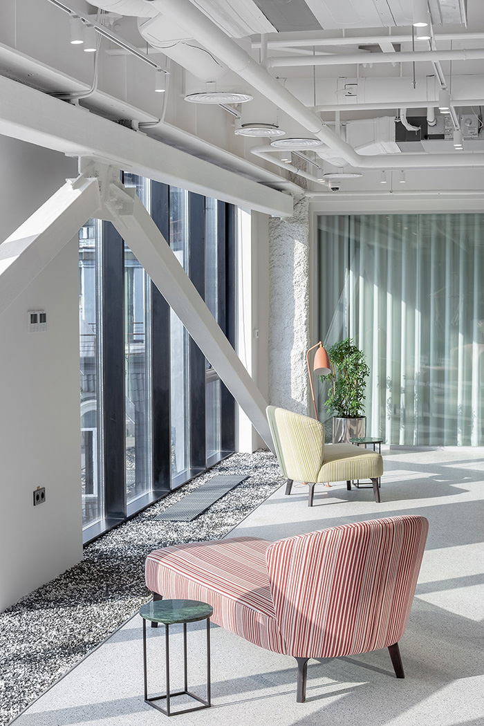由于建筑的传统构造严格限制了实现多层级共享立体空间的构想,因此,在规划上只能让每个楼层自给自足,各楼层都设有大型多元的公共活动区域。#办公楼设计装修公司#