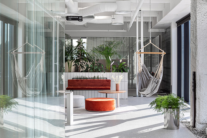 新办公场所位于基辅市中心一座翻修过的工厂大楼内,共占据五个楼层,将SQUAD原本分散于四处的部门都统一在同一屋檐下。该项目的设计概念是创建一个可随时微调、具有超强适应性的生态工作系统,这样即使在不确定的疫情期间也能优化工作流程和效率。#办公楼设计装修#