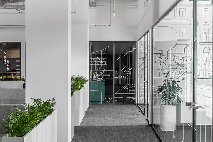 本案的设计理念是之前哈尔科夫办公室总体理念的延续。重新思考并在室内设计中传递基辅的城市精神、以及居民最喜欢的聚集地和打卡点。#办公室设计案例#