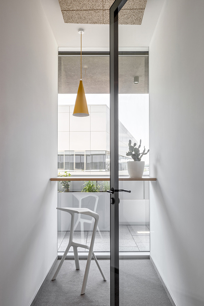 移动隔屏可以让项目团队随着产品开发而扩展人员和区域,并随着项目的完成而逐步缩小。除了这些可改变大小的解决方案,还设有非正式的分组讨论区和车厢座形式的会议空间,所有这些设计都是为了促进灵活敏捷的团队工作。#办公楼设计装修案例#