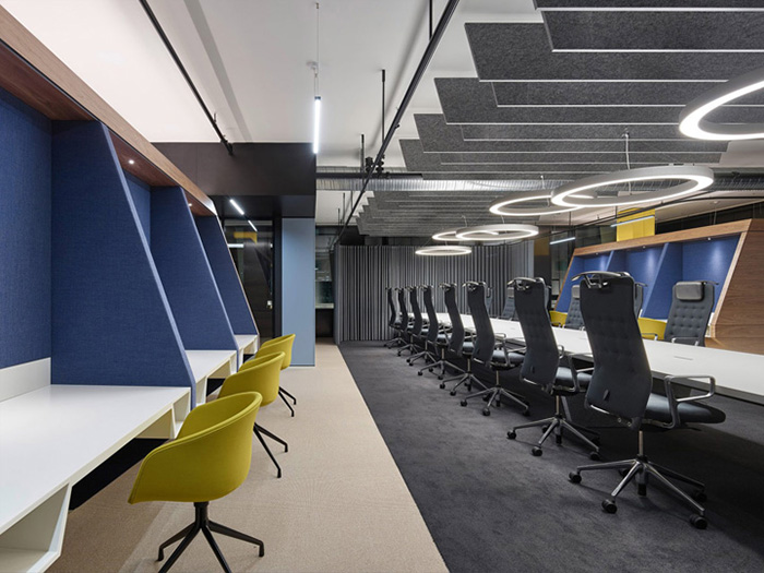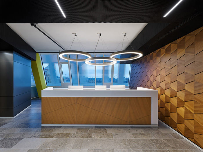 办公空间设计:城市形象与室内的互动体现在各种区域性材料和精细图形设计中
