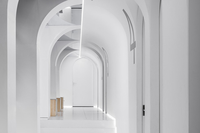 办公室空间设计:整个空间以白色为主基调 空间造型以曲线延伸