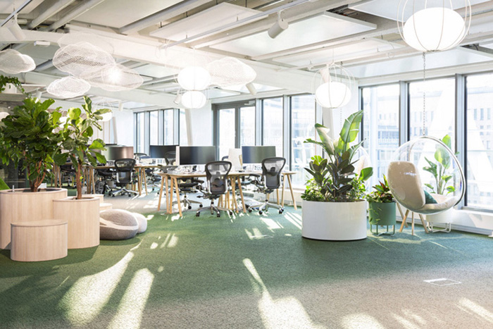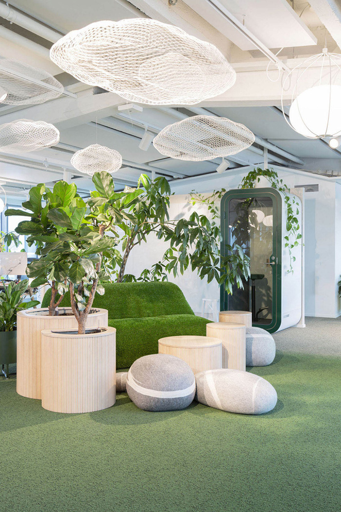 办公室设计装修——户外植物和苔藓绿植充斥着整个空间 营造出公园般的舒适氛围
