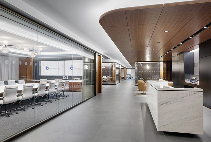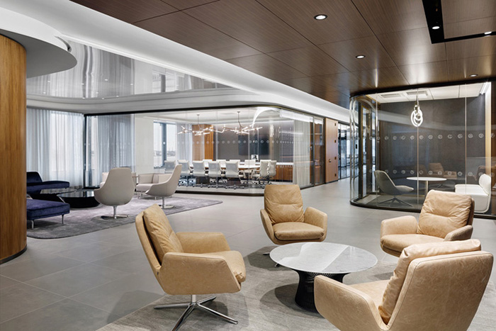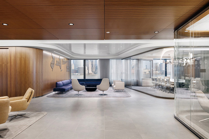 本案的设计灵感来源于银行特许服务的地区,如纽约、新泽西、波多黎各和维尔京群岛的地域特色。#办公室设计公司#
