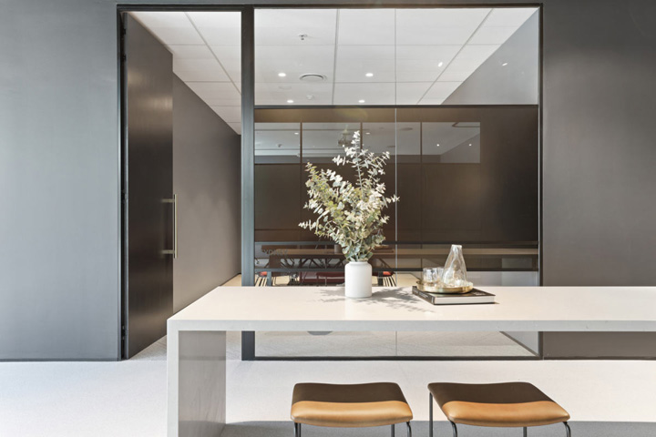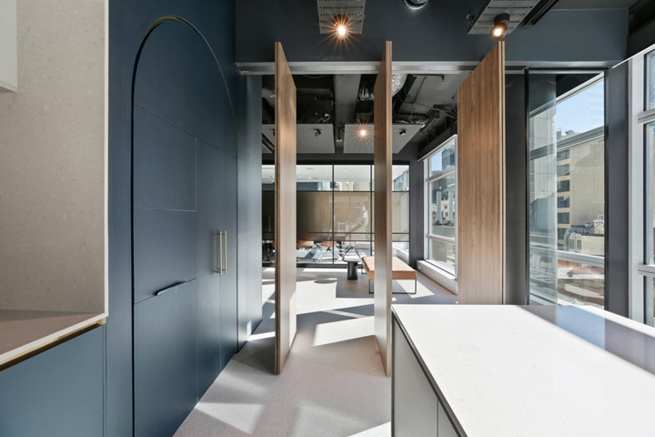 设计团队通过引入移动元素(折叠玻璃隔墙、旋转门、可移动白板系统)来创建一个高度灵活的可变空间。创造性的移动白板设计,不仅可以满足移动办公的需求,同时当室内出现强光照射时提供仿眩遮挡的功能。#办公室装修设计公司#