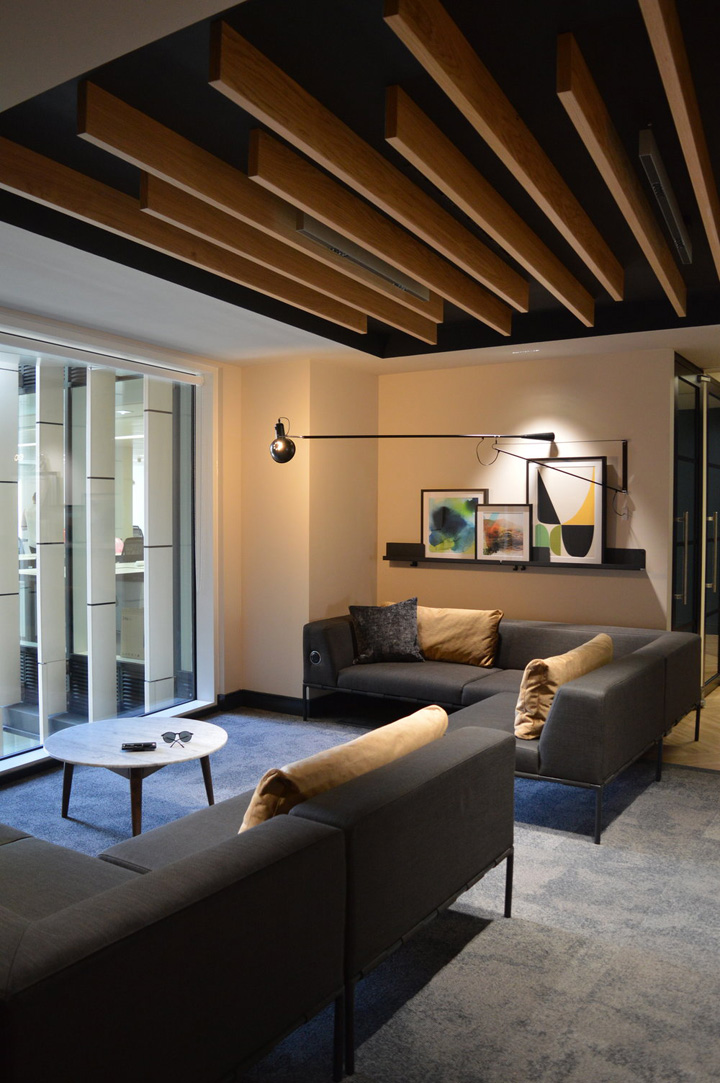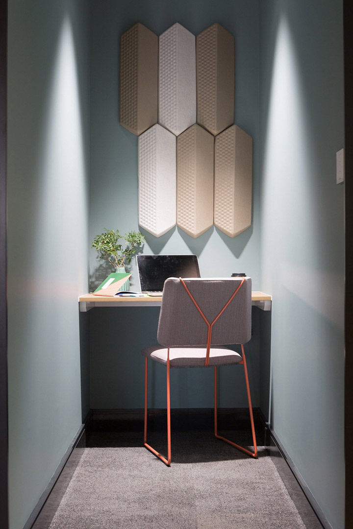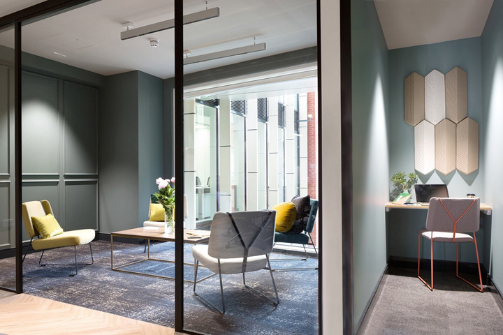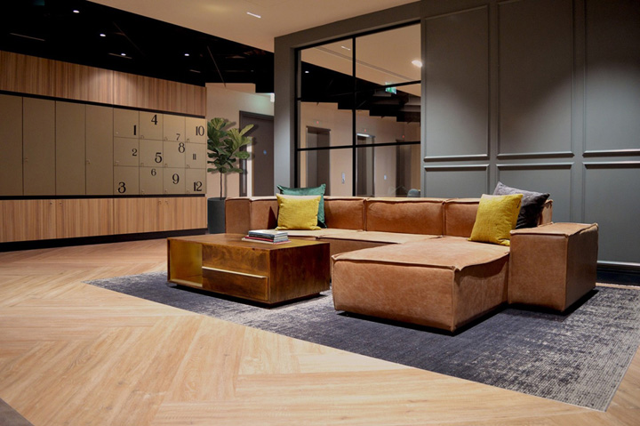 社交空间多采用轻柔的浅色调,而工作空间和会议室则使用较深的色调,以创建亲密的空间氛围。极简的现代设计结合传统元素带来多维度的空间体验?;嵋槭业那矫婢筒捎昧舜车幕で桨迳杓?,并铺以做旧的复古味地毯,营造出复古又摩登的空间气质。#办公室设计公司#