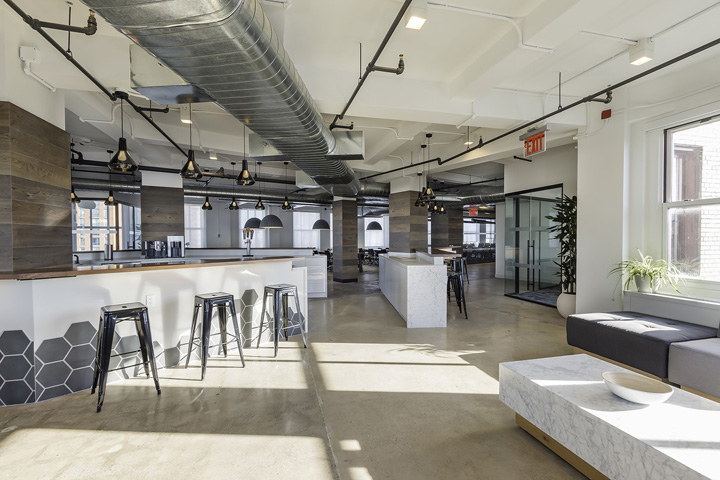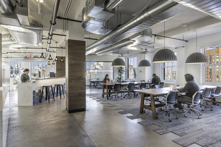 办公室设计:彻底抛却传统的“企业”模式 空间洋溢着简约的工业风氛围 日期:2022-9-13 11:18:07 人气:321 设计团队将美学与功能融为一体,让空间更具多元化用途;彻底抛却传统的“企业”模式,从家居与酒店的环境中寻找设计灵感。#办公室设计公司#裸露的顶面和设备管道、混凝土地坪、深色木板、六边形面砖、特色灯具和家具,让这里洋溢着简约的工业风氛围。运用最新日光传感器和调光器等设置,让这里从白天的会议空间自然过渡到夜晚的酒店般休闲氛围。#办公室设计案例# 上一篇: 办公室装修设计:通过配色、照明和家具以及大量温暖情怀的元素去打造空间 下一篇: 办公室装修方案:沉稳的设计语言加入趣味性的元素 传达出企业创新探索的一面…