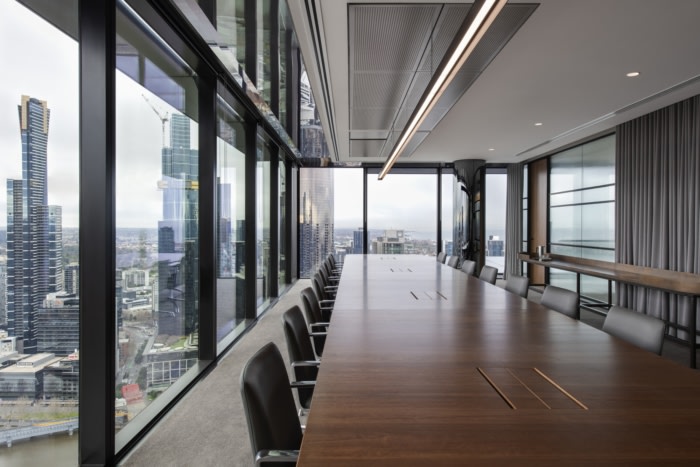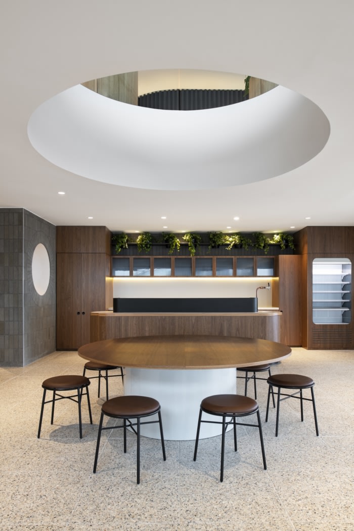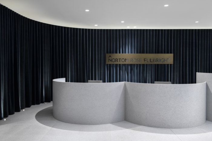 空间被上演和排序以隐藏和揭示,而一系列弯曲的、沉重的戏剧性窗帘遮住了旅程并吸引客户通过。进入客户楼层,过渡以弯曲、有机的方式流动,模糊了视线,创造了对“房子前面”的探索感。#办公室装修设计#