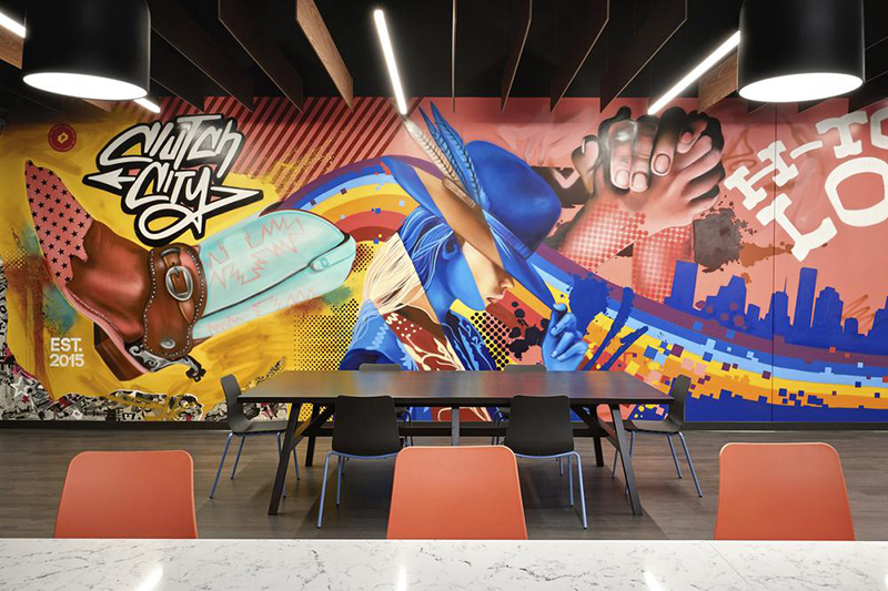 办公室空间设计:彩色涂鸦带来了视觉张力