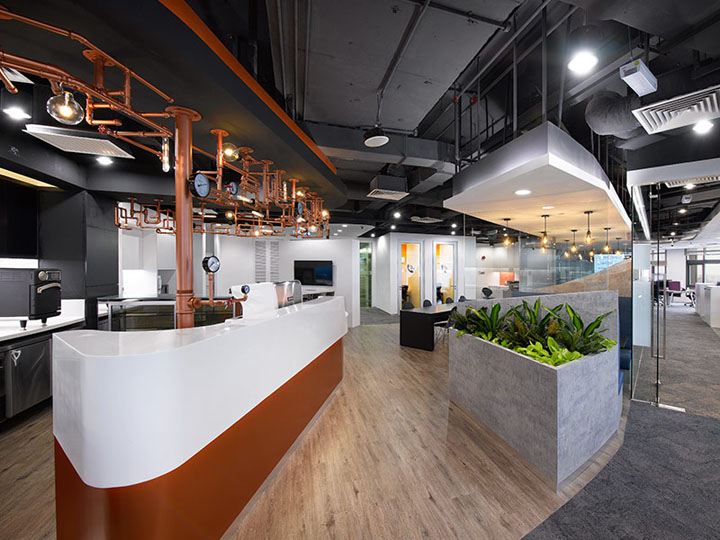 办公室装修案例:流畅动感的弧形设计强化科技感的空间氛围