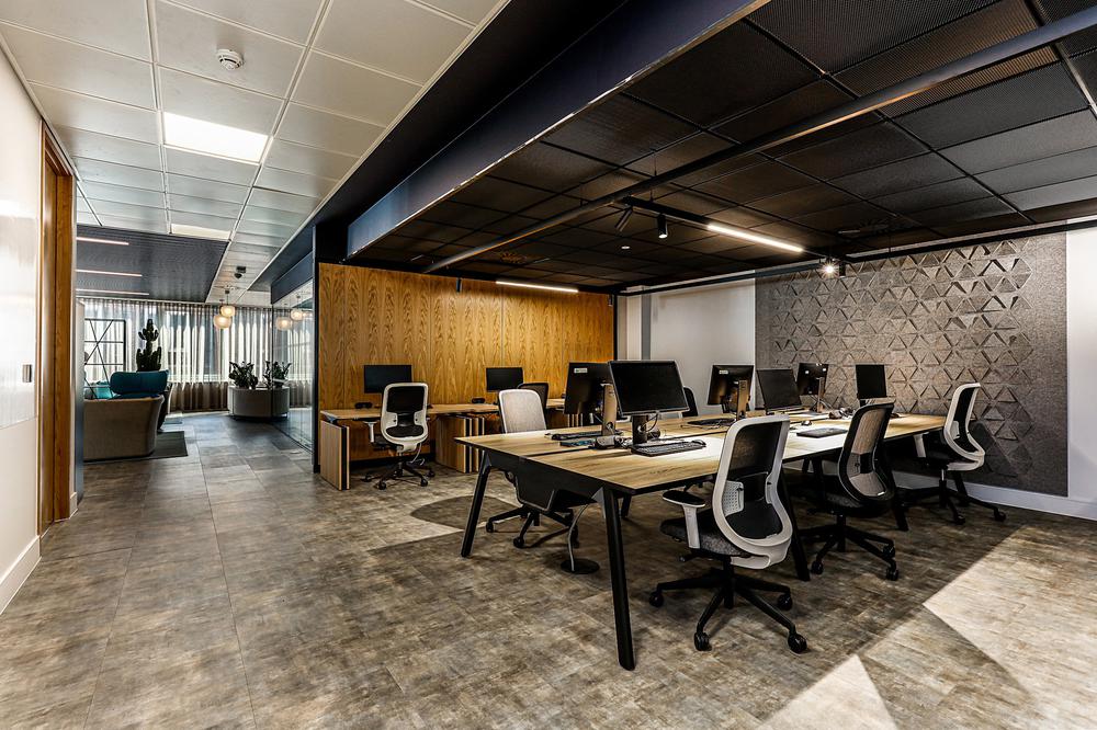 提升整体设施的实用性和美观性,同时增加协作空间并整合远程工作人员的需求。因此对当代前沿科技的投资成为关键要素。为了支持混合工作模式,设计公司在早期就任命了一名AV专家,以便可以通过应用程序或基于桌面的预订系统预订工作空间。#办公室装修设计#