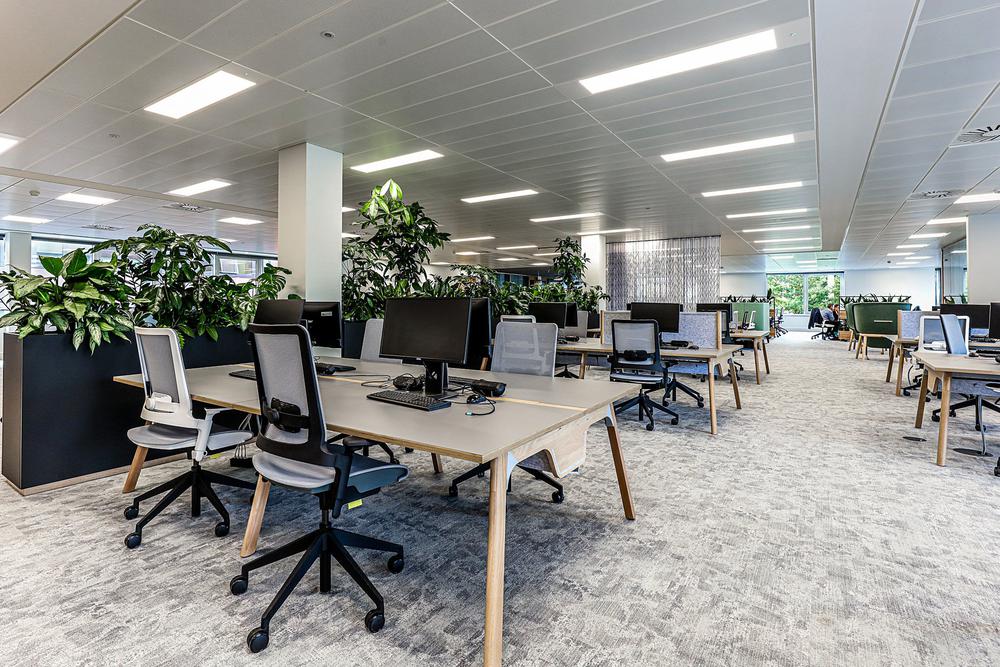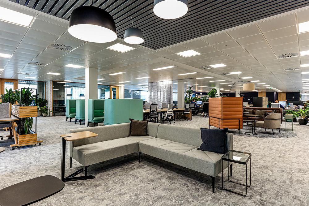 办公室装修设计:从一个僵化的传统型办公布局转向极致灵活和多元,同时以优雅多彩的配色取代单一乏味的白色墙面,以全新色调、肌理和材质构建一个热情友好的工作环境
