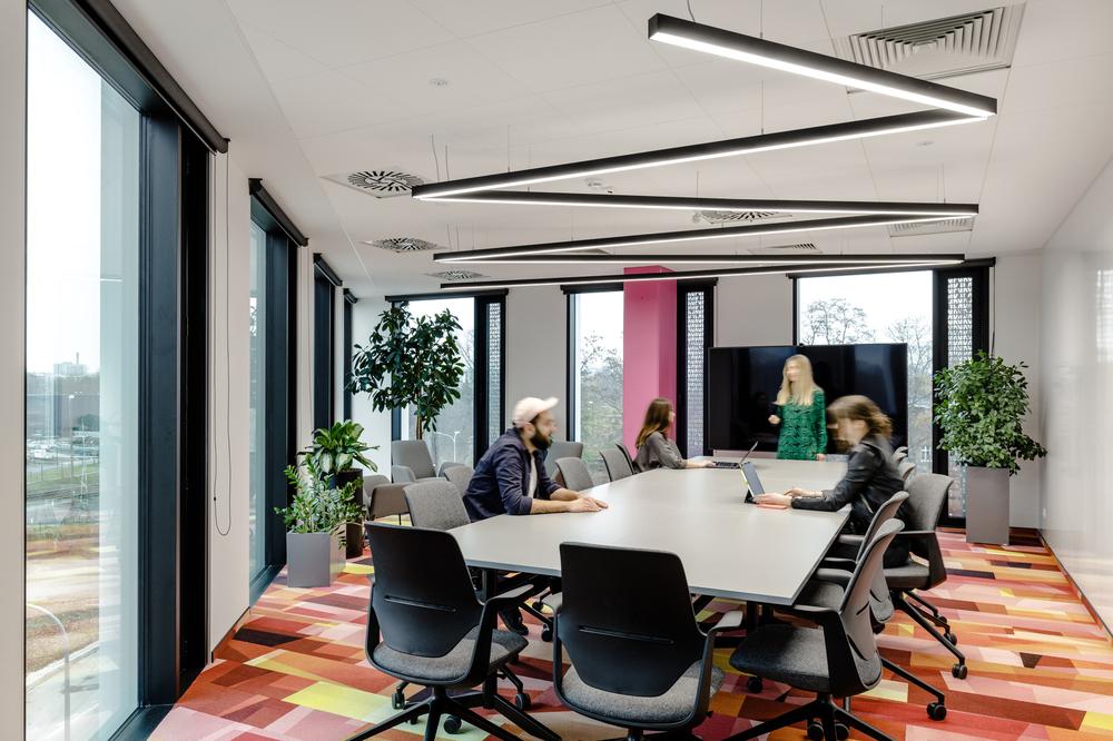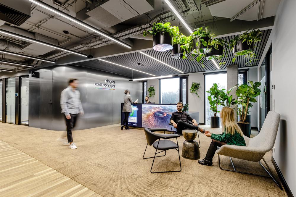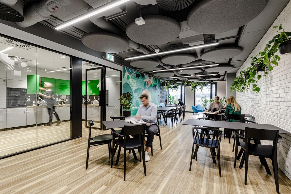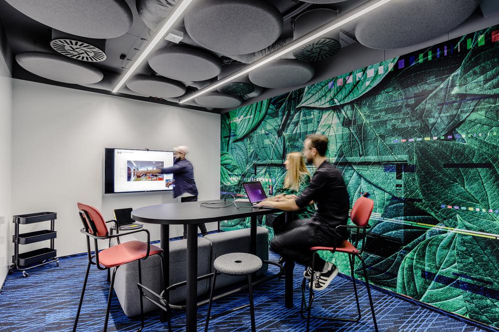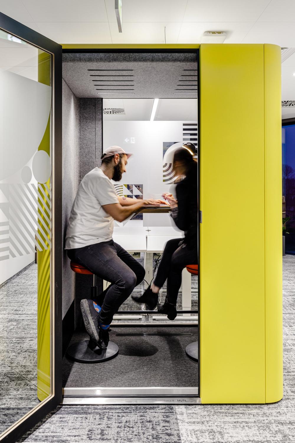 办公室的设计保留了其一贯的时尚属性,但也加入了更丰富的色彩,不再似从前那般单一,赋予工业风的环境全新温暖和舒适体验,极具视觉冲击力的墙面图形和亮色静音舱的应用也更契合其现代媒体品牌形象的传达。#空间设计#