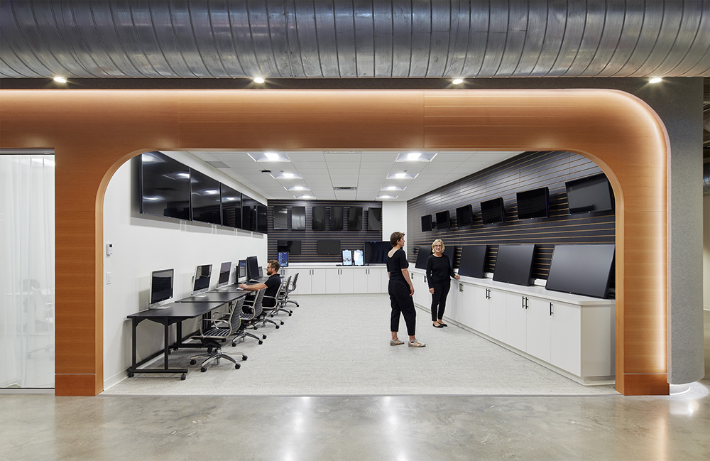 曲线和柔软的转角、以及自由曲线型灯光装置是本案重要的建筑细节。咖啡吧采用了波纹板状的饰面砖,所有会议区域都采用柔软的毛毡贴面,并采用了柔软的曲线形式,所有这些细节语言都为室内空间增加了细腻的品质体验。#办公空间设计#