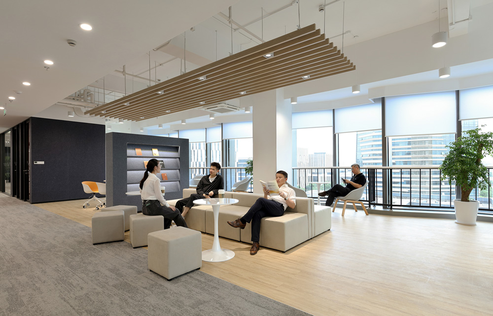 办公楼空间设计:良好的社交氛围能促进公司文化的发展,增强公司的凝聚力,令员工更有归属感,创造了一种充满活力和富有成效的工作方式并促进创新