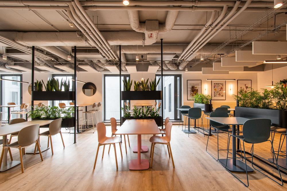 洋溢着美味巧克力诱惑的办公环境!接待台犹如一块大大的巧克力让人忍不住想咬上一口!对面墙上巧克力色的晕染,就像是融化的巧克力,似乎让人闻到那令人愉悦的甜美味道。顶面柔软的声学板装饰,以及绿意葱茏的藤蔓绿植,让接待区活色生香。#办公室装修案例#