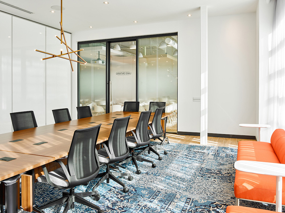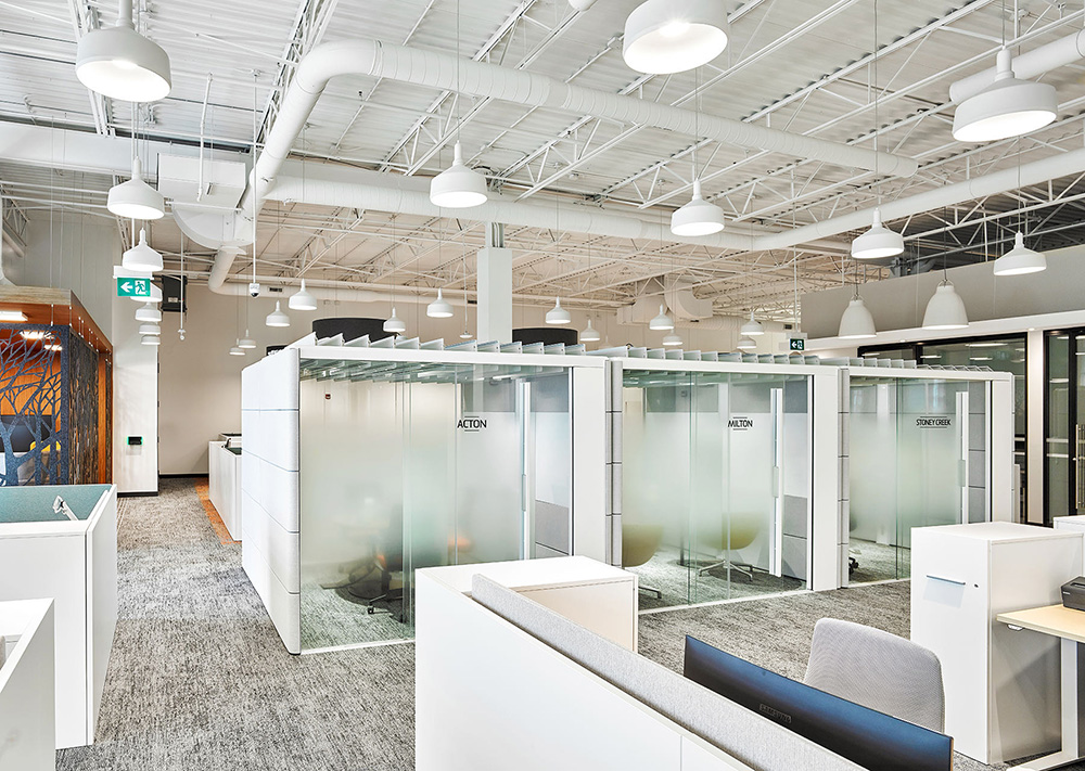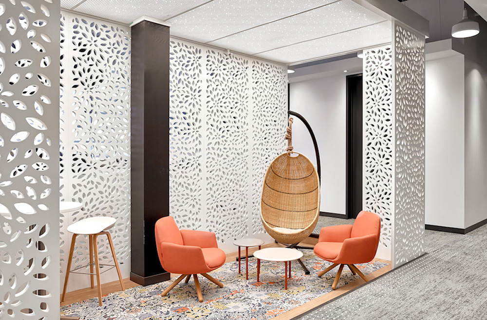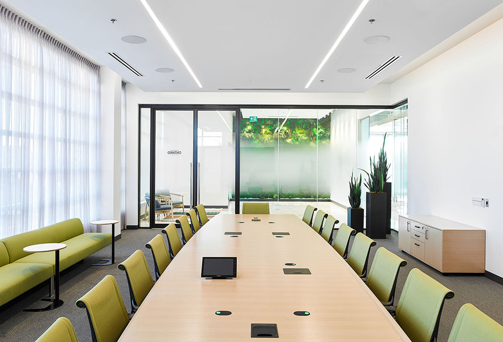 开放区的照明设备均为定制,将声学解决方案与LED照明相结合,独具特色的灯具装置缓和了过于开敞的空间感,为员工营造更舒适亲和的工作氛围。整个空间以白色和浅灰色为主背景色,配以温暖的木色和随处可见的大片绿植,在充足的自然光照下人们的愉悦感和幸福感大增,工作效率自然大大提升。#室内设计案例#