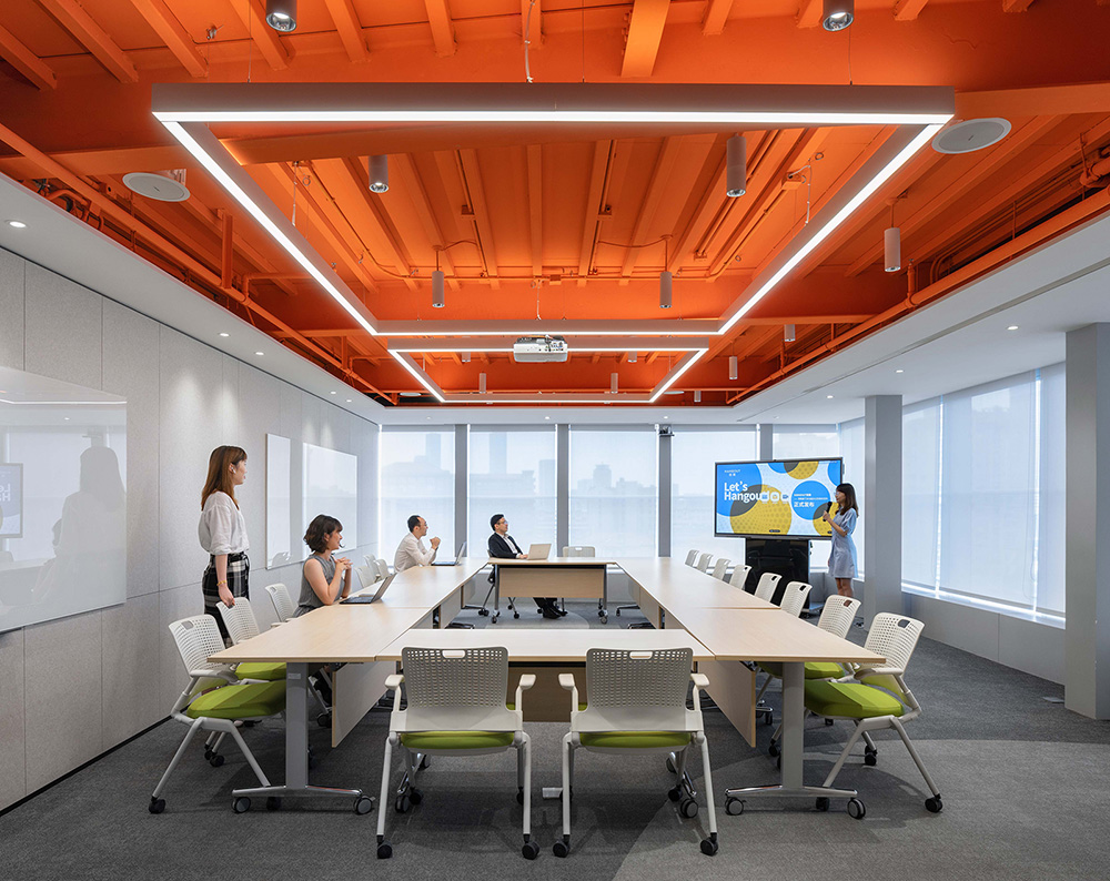 “城市客厅”的理念贯穿于整个空间设计中,不管是路演厅、培训室、还是会议室,所有的空间都可以或连接,或分割,无论是举办大型派对,企业团建,还是更多大型活动,无边界的设计让一切想象成为了可能。根据不同的需求来转换空间,“聚人”的空间是企业未来的希望和动力。#设计装修案例#