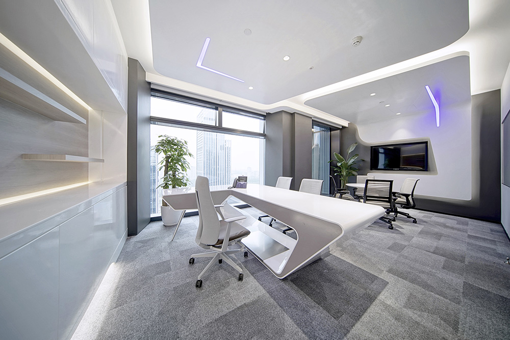 主茶水间位于前厅西侧,兼顾活动室功能;休闲设施一应俱全。地面的BOLON编织地毯呈鳞片状铺装,随着光线和视角的改变呈现出绚烂的色彩;家具的围合形成不同的组团:茶歇、浅谈、简餐、阅读,游戏……。虽然置身万象天地腹地,其中休闲餐饮选择不胜枚举,但是店家再有诱惑的茶点也抵不过享用一杯自己亲手调制的咖啡感觉惬意……家的归属感难以抵挡。;设计的语言仍然是“直”与“曲”的变化,但色彩的丰富使情绪热烈起来。#设计装修案例#