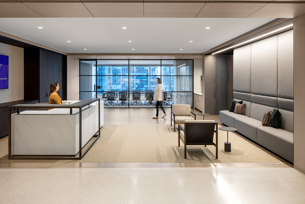 设计团队完美实现Much Law律所位于伊利诺伊州芝加哥的新办公室。其倡导的协作精神和学院式的工作环境、以及现代商业运作氛围,吸引了美国业界顶级律师的加入。#空间设计装修#